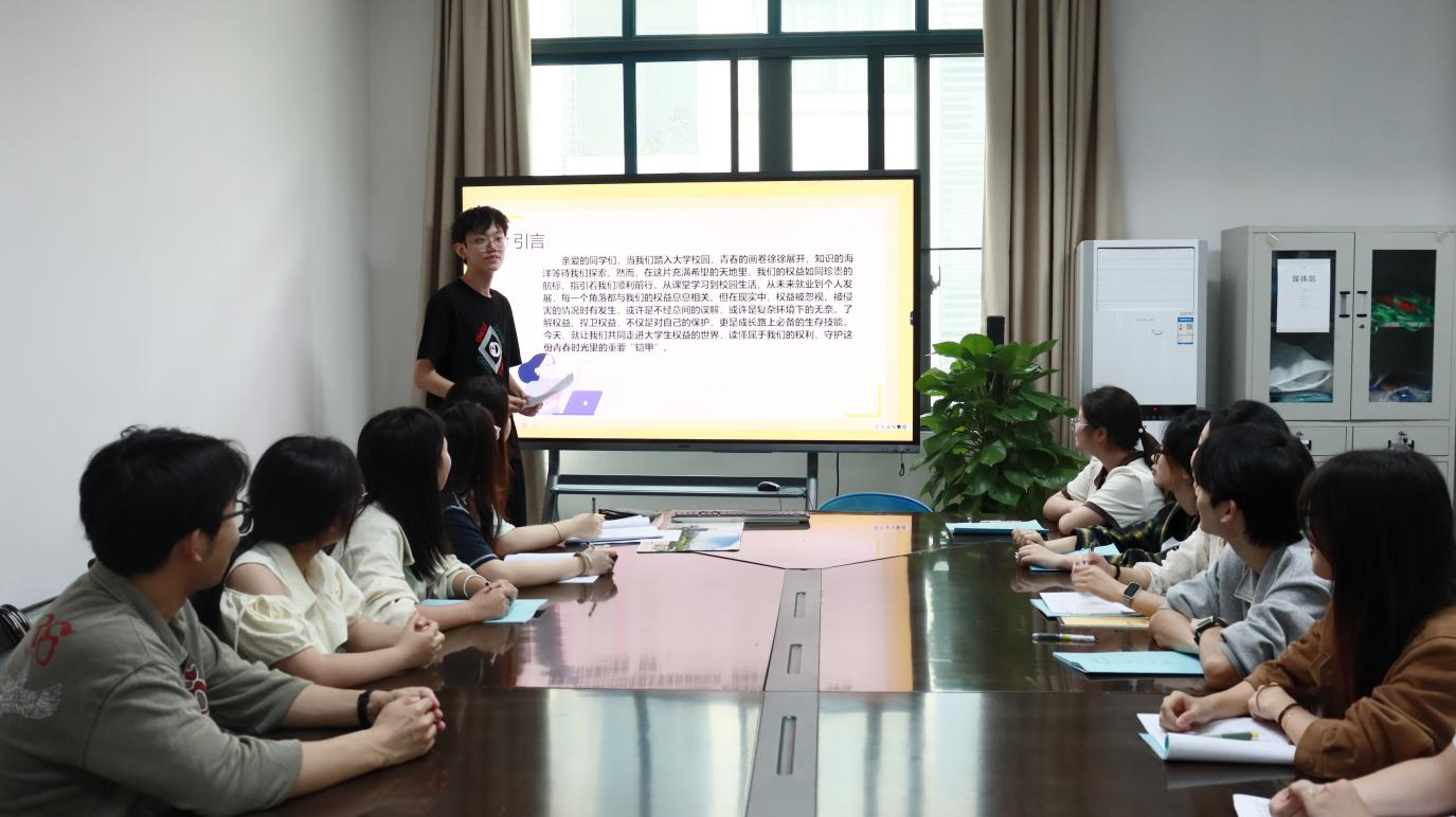 为增强大学生权益保护意识,提升学生自我维权能力,5月6日中午,番号鸽 团委学生会于求是楼316开展“大学生权益知多少”权益维护宣讲会。本次宣讲会由团委学生会生活部负责人葛欣恺主讲,第十九届团委学生会全体成员参与。