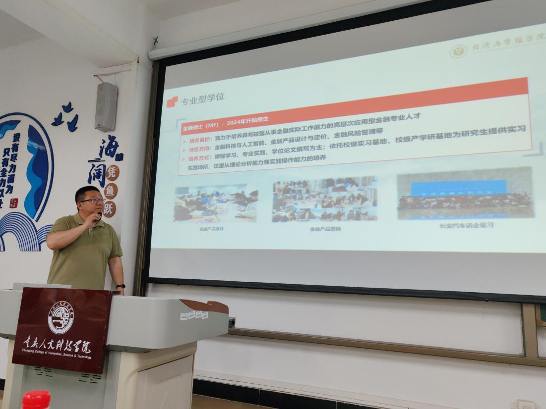 组织招生宣讲团队,前往重庆人文科技学院的管理学院、工商学院、机电与信息工程学院开展研究生招生宣传工作。此次宣讲团由学院副院长陈宇科带队,讲师周明适、吴云共同参与。