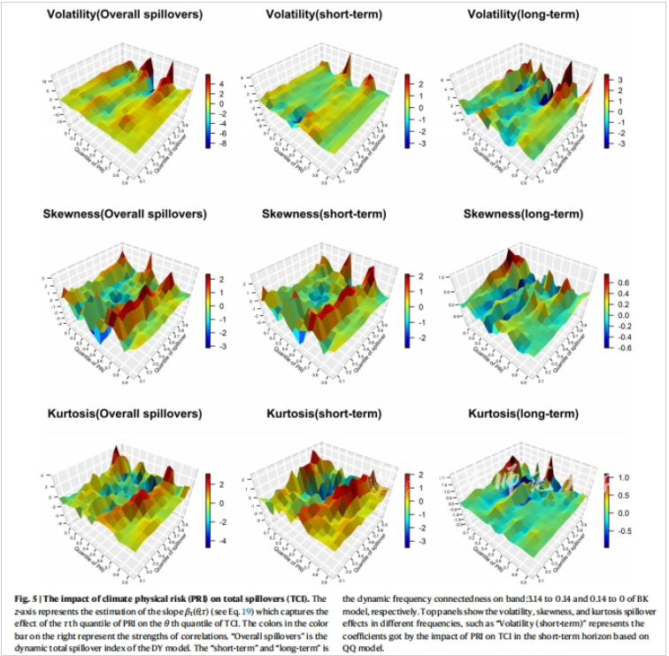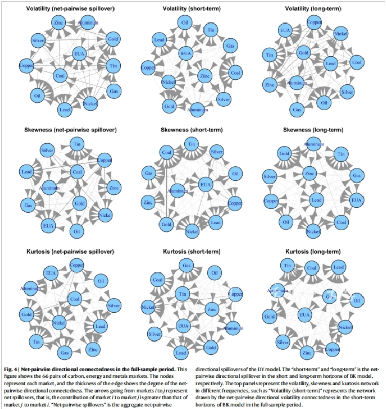 气候变化已经成为全球关注的焦点,其对碳、能源和金属市场的影响也日益显现。当前研究领域存在的主要问题是如何对气候风险的不同类型进行区分以及怎样界定其对市场间风险传递的影响。基于此,该论文使用GJRSK模型、时频溢出框架、复杂网络理论及分位数对分位数方法,剖析气候物理风险和转型风险对碳、能源和金属市场之间风险传递的不对称影响。研究发现气候风险对碳、能源和金属市场的风险传染的影响存在不对称特征,气候物理风险主要影响市场上行风险溢出,而气候转型风险则更容易影响市场下行风险的峰度连接。该研究为投资者和监管机构提供了重要的参考,同时也为分析市场间的风险传递提供了新的思路和方法。周玉琴在该论文中主要负责论文撰写以及计算高阶矩风险溢出效应,深入剖析碳、能源和金属市场高风险溢出效应。