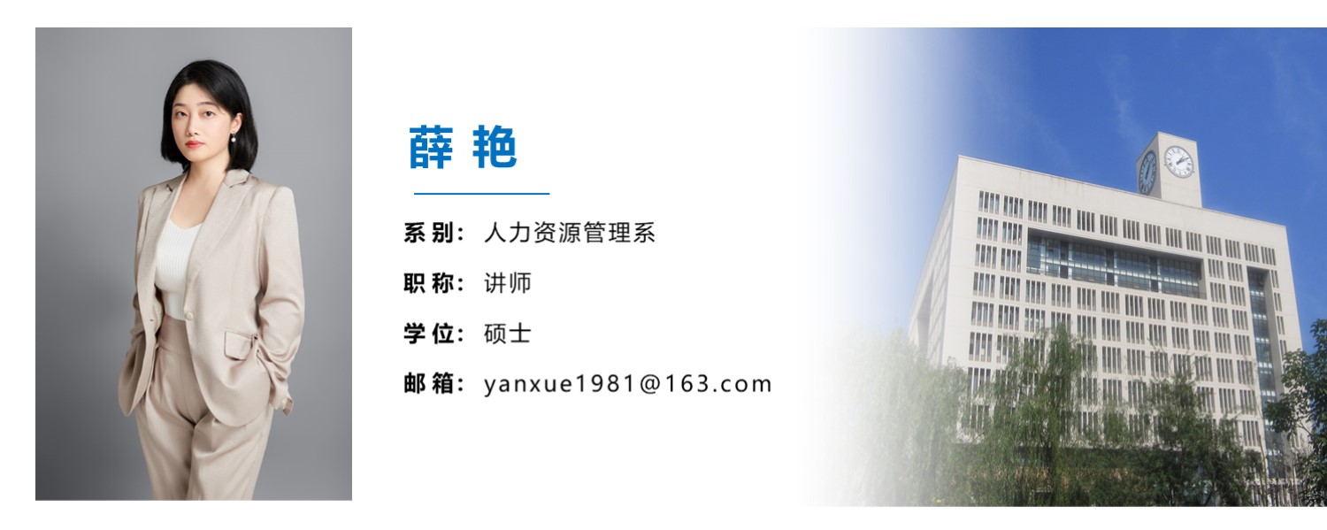 薛艳,女,汉族,1981年1月出生,管理学硕士,讲师。主讲课程有《人力资源管理》、《绩效管理》、《薪酬管理》、《组织行为学》、《经济法》等,发表论文10余篇,撰写教材2部,并多次担任企事业单位人力资源管理体系的研究咨询工作,具备较为丰富的管理咨询经验。