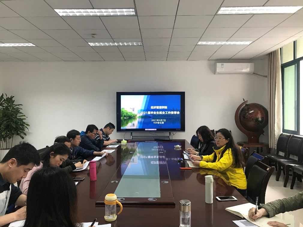 于求是楼420办公室召开了2021届毕业生就业工作推进会。学院党委书记税强主持会议,副院长(主持工作)郑景丽,系主任、教工支部书记,毕业年级辅导员参与此次会议。