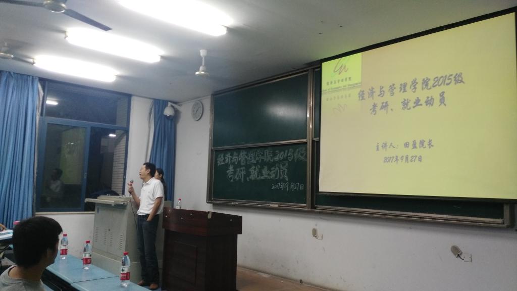 金融工程专业动员大会结束后,田院长陆续地为2015级经济学、人力资源、财务管理、工商管理专业的学生开展了考研、就业动员大会,根据不同的专业为同学们有侧重地讲解就业与考研方向的合理选择。动员大会的成功召开,不仅使2015级的同学们对于考研形势和备考工作有了进一步的认识和了解,同时还激发了同学们考研的热情,坚定了部分深感迷茫的同学们的考研信心,也使同学们更加明确了自己的考研目标。