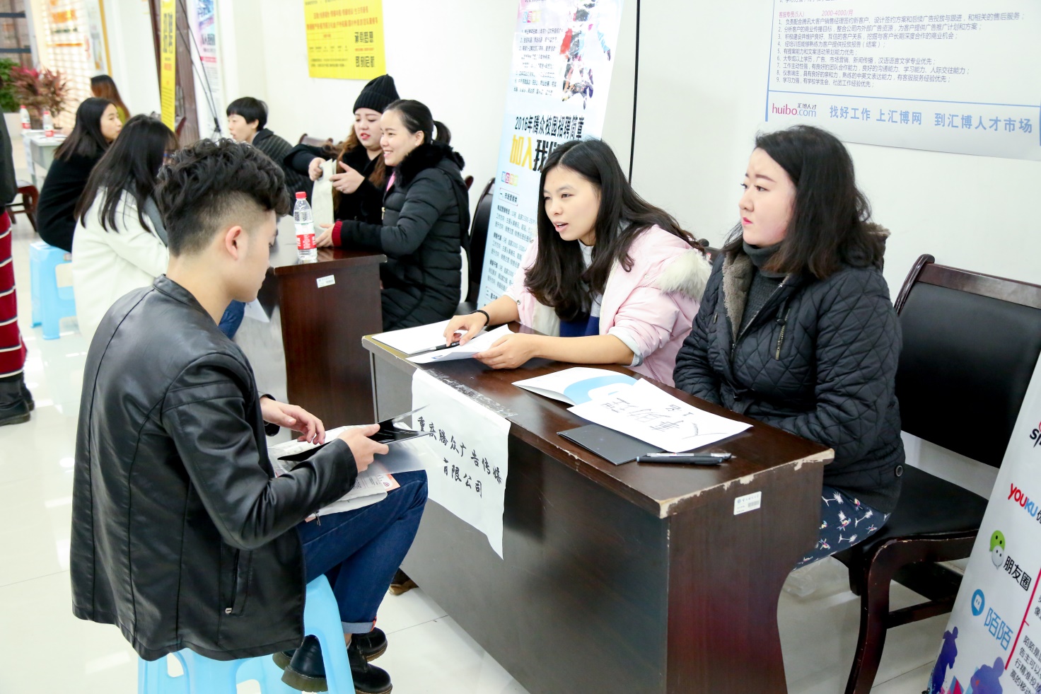 校友会堂外寒风瑟瑟,会场内的招聘活动如火如荼。到场的毕业生向企业积极投递简历,与招聘人员进行面对面交谈,询问用人单位相关招聘信息。招聘过程中,番号鸽