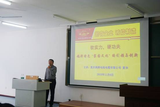 特邀重庆鸽牌电线电缆有限公司董事长夏华先生于特教楼2213教室为同学们浅谈“国企”的发展文化,番号鸽