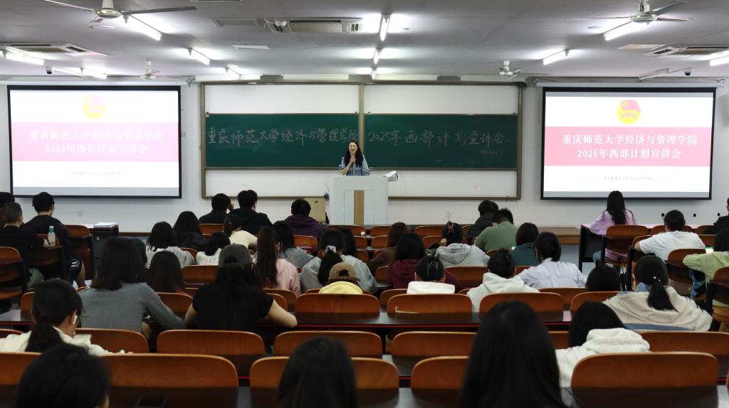 在励志楼T2213开展西部计划宣讲会。会议由学院团委书记兼学工办主任张莉担任主讲,辅导员唐艺珊主持,2021级全体毕业生参加。