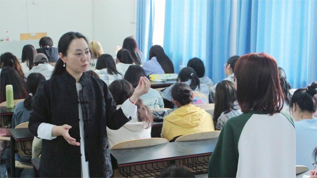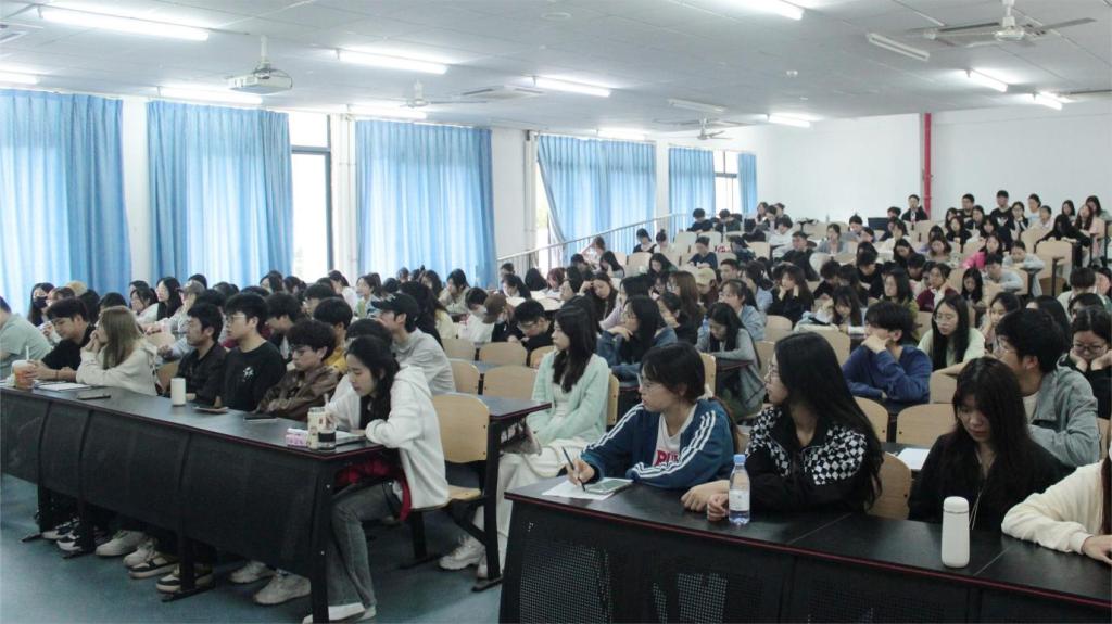 于砺志楼T2208开展大学生求职个体面试与群体面试应试技巧培训会,学院党委书记钟敏担任主讲人,2021级同学参与学习。