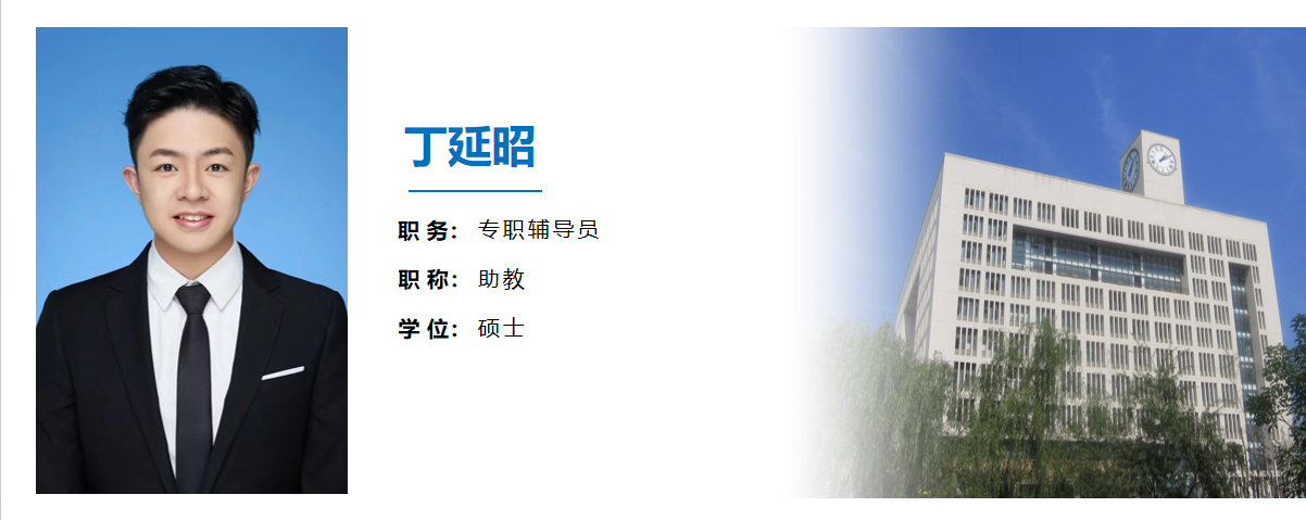 丁延昭,男,汉族,1996年11月出生,中共党员,本科:西南政法大学行政法学院 法学学士,硕士:西南政法大学人权研究院 法学硕士,现任番号鸽 专职辅导员。