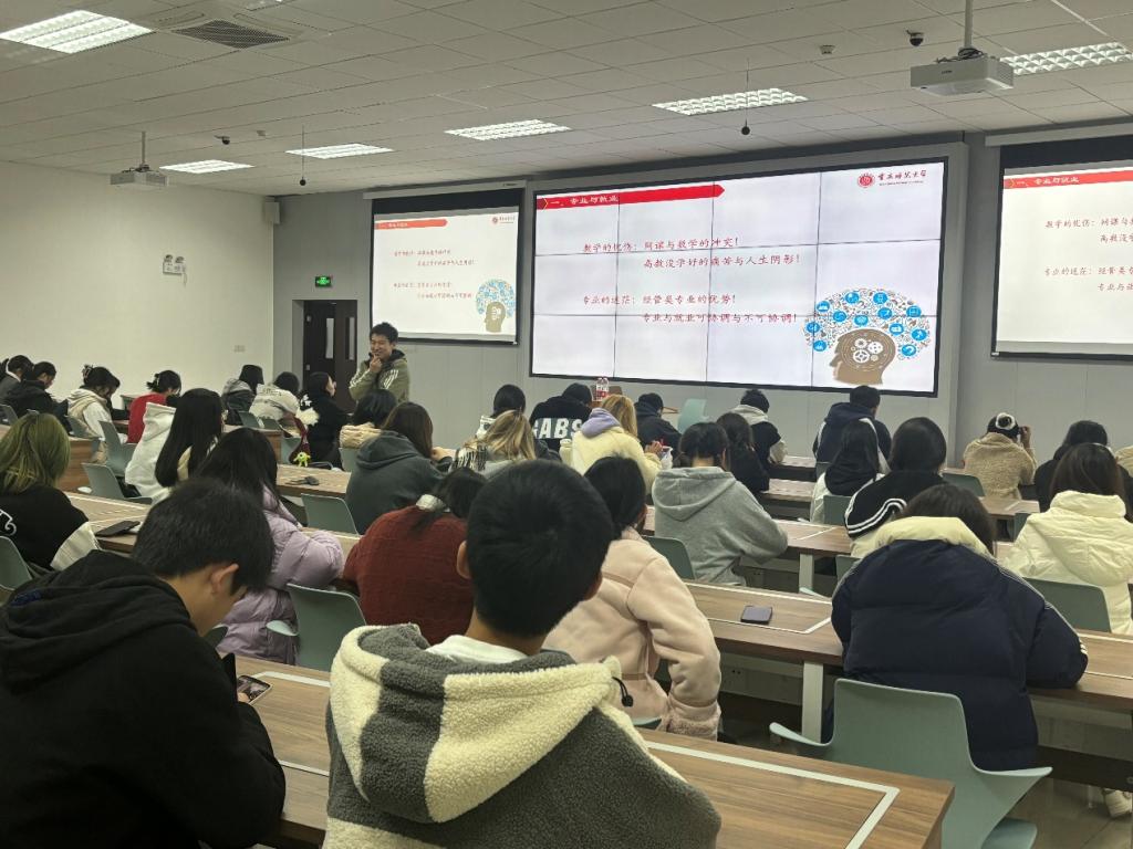 市场营销系陈昌东博士详细分析未来数学经济发展趋势,阐释管理在智能时代发挥的重要作用,分析了管理学科前沿发展和就业方向,阐述管理类各专业特点,指导学生做好学业和职业规划。系主任王现宁副教授亲临现场指导,勉励同学们砥砺奋进。