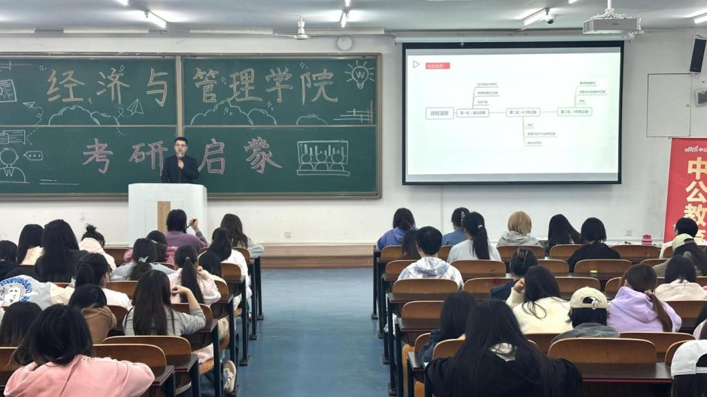 于2024年10月14日晚在特教楼T2507举办了考研分享会。此次活动特邀中公教育资深讲师王璐老师,为2022级全体学生带来了一场内容丰富的考研启蒙讲座。