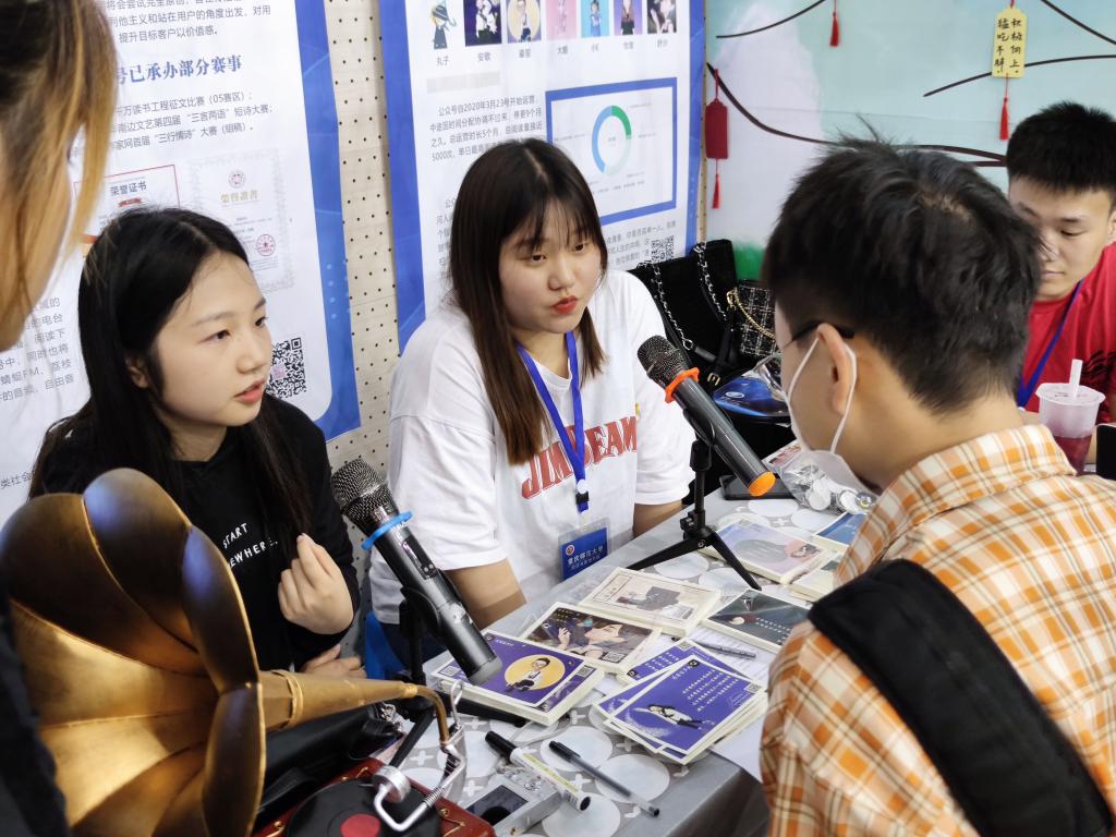坚果合作社平台展示了“ERP沙盘模拟”、“商务PPT”、“梧桐学社”以及“漫漫留声机”四个项目。到场同学通过体验ERP沙盘模拟,在企业经营管理的实战演练中熟悉企业的运作模式;商务PPT项目小组成员展示的精美PPT,吸引现场多人驻足观看;梧桐学社及漫漫留声机通过让参观者们亲手书写愿望卡片、朗读舒缓文章的方式调节情绪、释放压力,更有来自越南的文学爱好者在番号鸽