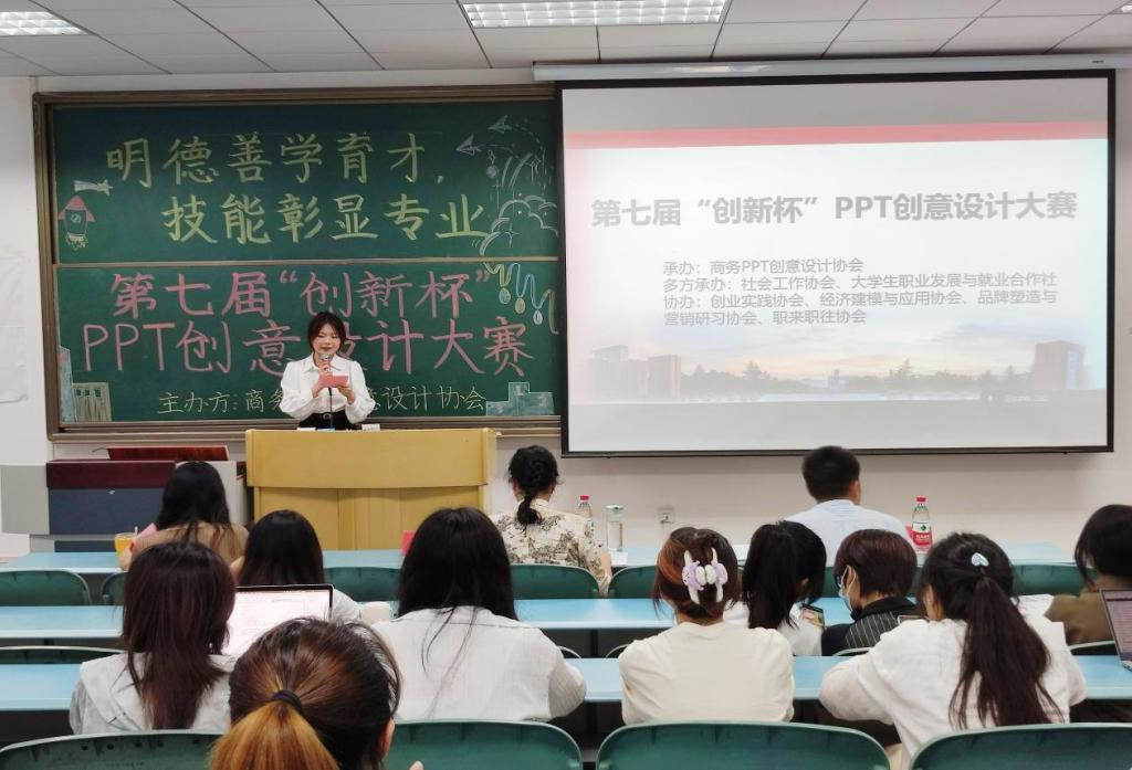 商务PPT创意设计协会在求是楼321顺利举办第七届“创新杯”PPT创意设计大赛,此次比赛的评委有学院经济学系副教授苏莉老师,2021级辅导员唐艺珊老师,2021级财务管理班主任尹亚华老师。
