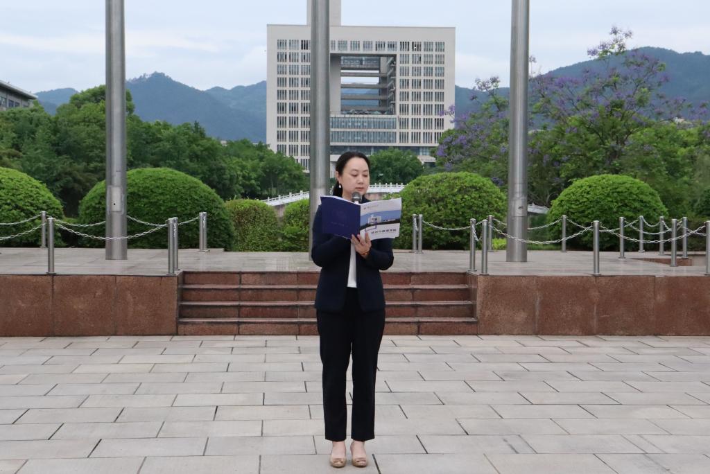 晨曦徐徐,国歌雄壮。全体师生在美丽的三春湖畔举行升旗仪式,接受思想的洗礼。仪式伊始,护旗手们迈着铿锵有力的步伐护送国旗入场,在慷慨激昂的《义勇军进行曲》中,鲜艳的五星红旗冉冉升起,全体师生肃立行注目礼。升旗礼毕,党委书记钟敏作国旗下的讲话。