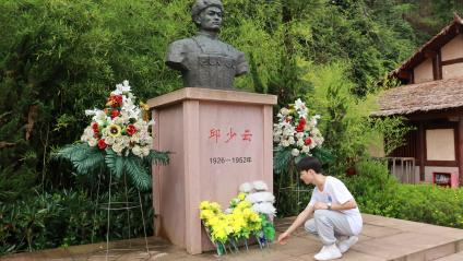 7月6日,“英雄精神薪火传,烈士故里展新颜”党史学习教育团赴铜梁区少云镇少云村邱少云故居开展“党员领学、红歌传唱、经典诵读”等党史学习教育。走进少云故居,聆听讲解之声,成员身临其境,共感邱少云于烈火中永生;学生党员代表结合革命文物等“生动教材”,全方位、立体式开展情景式“大思政课”;少云雕像前,党员肃立,献花向烈士默哀致敬,重温入党誓词,铮铮誓言响彻云霄。学习团红心寄歌咏,“经”声颂党恩,感受红色、聆听红色、唱响红色,缅怀先烈、铭记历史。
