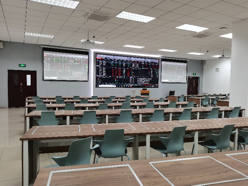 配有高清激光投影仪、液晶显示拼接屏、云终端、实验室智能管理系统等智能设备,虚拟证券交易所课训赛软件、商业银行仿真实训平台软件、wind金融数据库终端,主要服务《证券投资学》、《金融工程》、《固定收益证券》、《计量经济学》、《金融市场与机构的风险管理》、《商业银行经营管理》、《统计软件应用》等课程实验实训教学、教师科学研究、学生创新实践及学科竞赛。