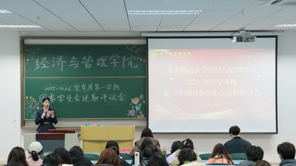 于求是楼321开展2025—2026学年第一学期团委学生会述职评议会。学院团委书记兼学工办主任张莉、第20届团委学生会全体成员及各年级学生代表参会。